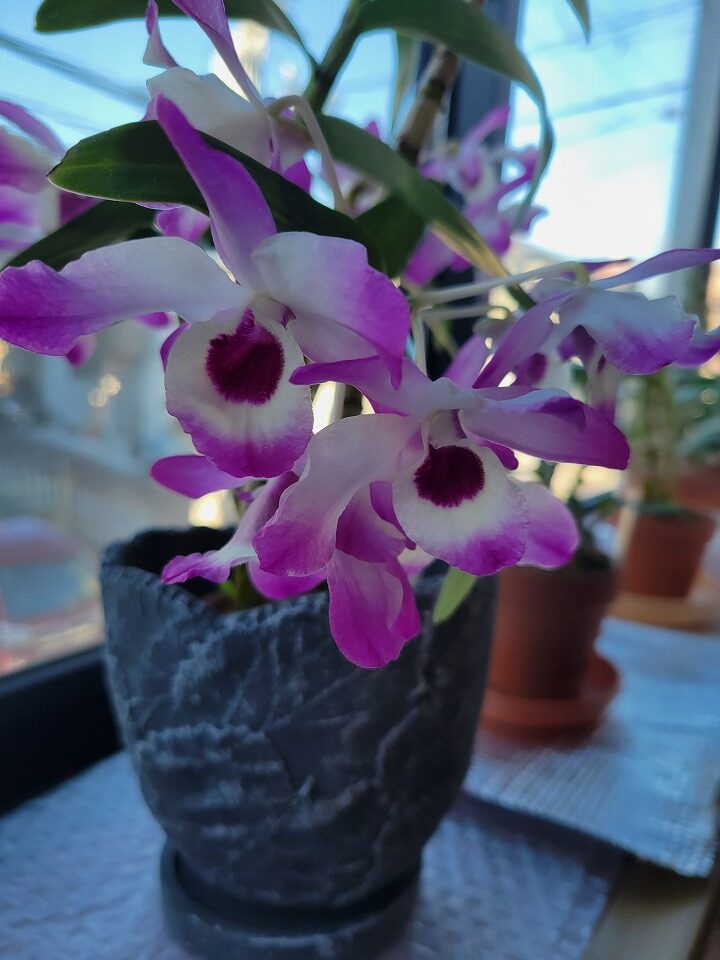 ピアノの上のガーデンデンドロビウムが、