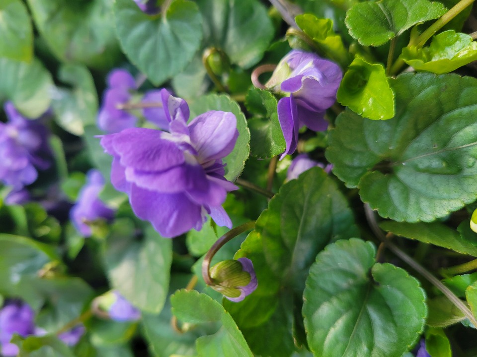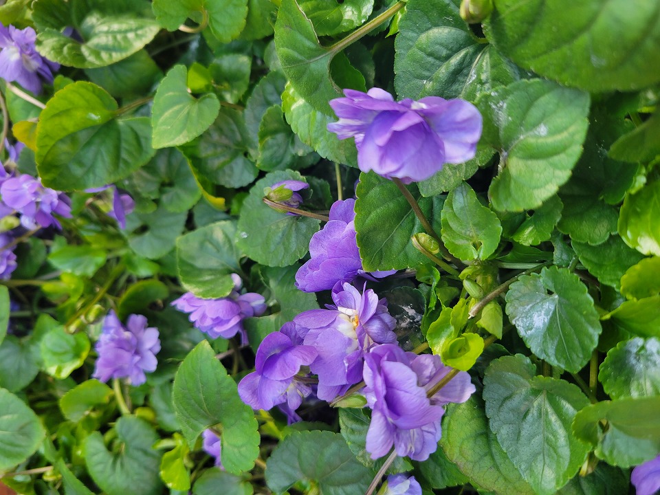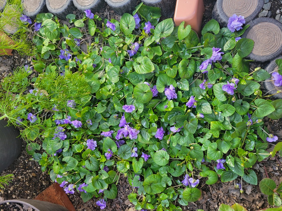 庭のパルマスミレが一面に広がり、